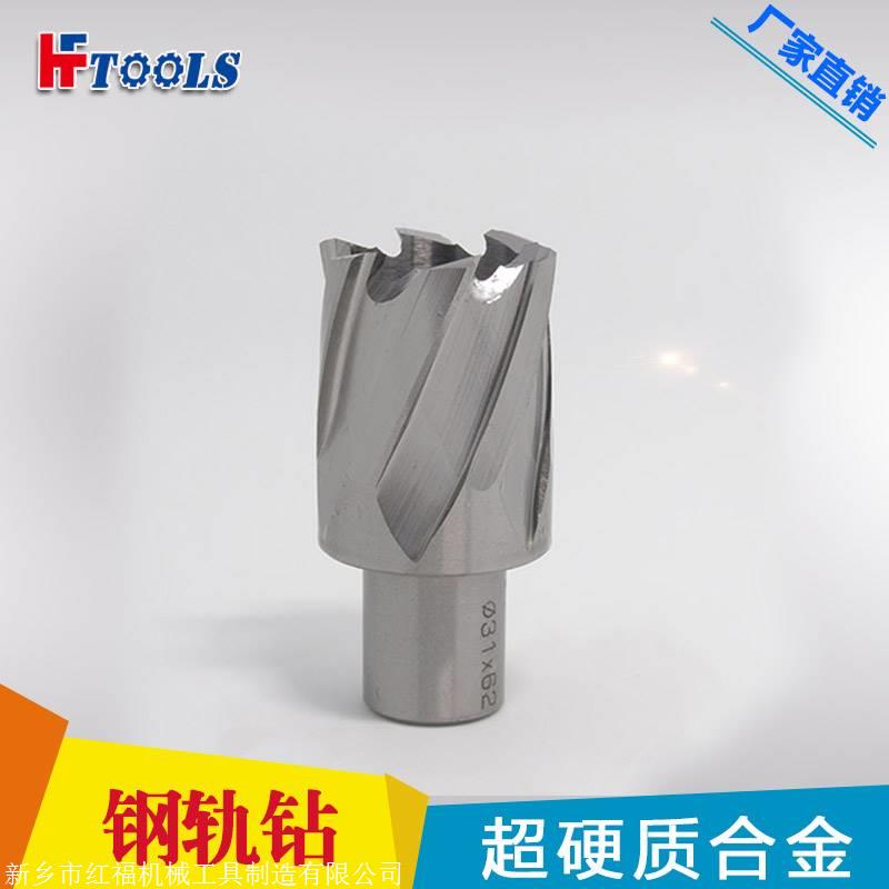 轨道钻头分成高速钢系列和硬质合金系列。它们与铁路钻孔机一齐用到,是铁路维护中必备的钻孔工具。它们有着多个切削刃,不错的耐磨性和较高的钻孔精度。,钻削效率是一般而言麻花钻的两倍,一个钻头一次可以在最坚硬的材质的钢轨上钻40-50个孔,钻头磨损后可以连续研磨十次以上;另一种硬质合金钢轨道钻,钻头由高强度硬质合金刀片焊接而成,兼具钻孔寿命长,刀片磨损不佳,钻头破损不佳等优点,并可多次磨削。穿后。